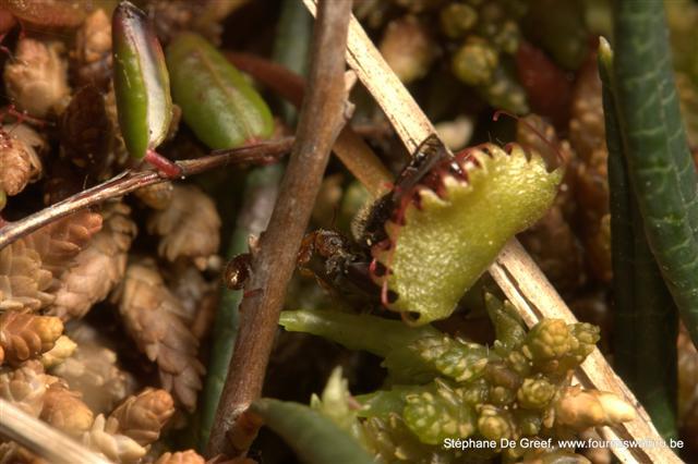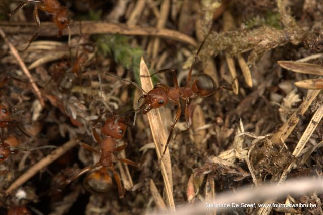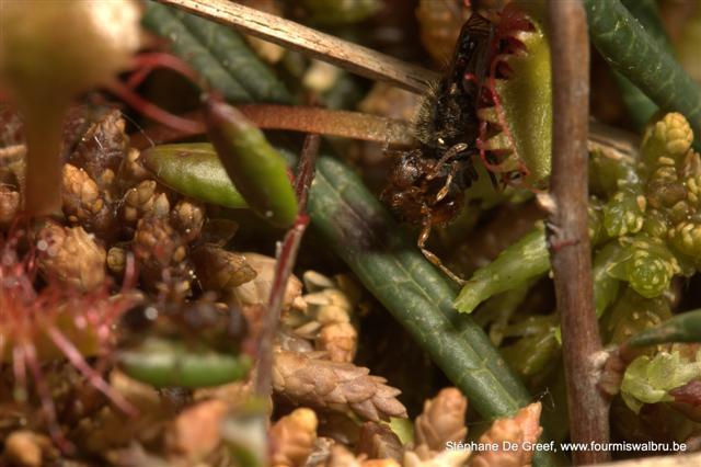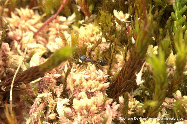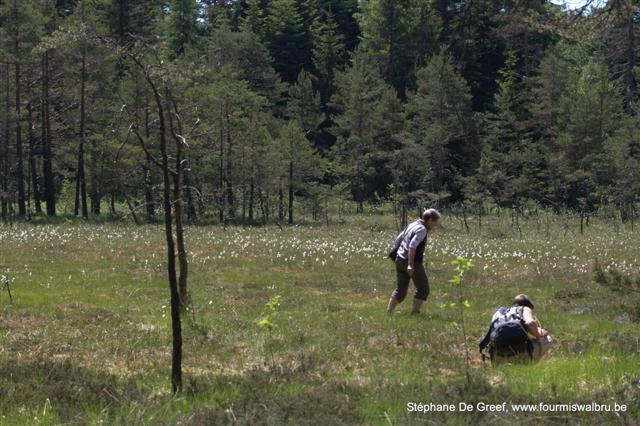 La tourbière abrite une belle colonie de F.truncorum. Nous y avons vus plusieurs dômes. Il y avait également des dômes de F.lugubris et nous avons trouvés quelques autres espèces comme M.scabrinodis, C.herculeanus, L.acervorum, etc. Mais la plus grosse « surprise », pour le biotope, fut la découverte de Tapinoma sp sur et dans la sphaigne. En plus des ouvrières qui courraient joyeusement sur le substrat, j’ai trouvé tout un nid (œufs, larves et ouvrières) dans la sphaigne. Jusqu’à présent j’avais toujours trouvé cette espèce (Belgique et France) dans des milieux secs et très thermophiles.