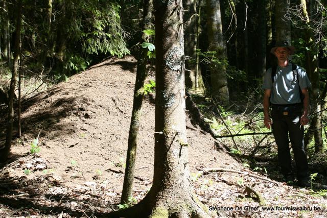 Nous avons pris congé de notre hôtesse afin de rejoindre Louis-Michel Nageleisen (Ministère de l’agriculture et la pêche – Département de la Santé des Forêts) qui voulait nous montrer quelques gros dômes de F.polyctena. Nous avons également abordé la problématique de la protection des fourmis rousses des bois, en France.
