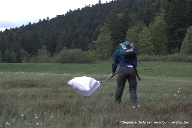 Nous nous dirigeons vers les crêtes et les tourbières. Dans une première tourbière, très malmenée par les aménagements touristiques (station de ski), où nous ne trouvons pas grand-chose, nous rencontrons, Stéphane et moi, un groupe de touristes et leur guide nature. Après une brève discussion sur notre activité, il nous conseille d’aller sur une autre tourbière. Nous retrouvons David et Valérie, qui avaient prospecté une autre zone, à la camionnette et nous repartons vers notre nouvelle destination.