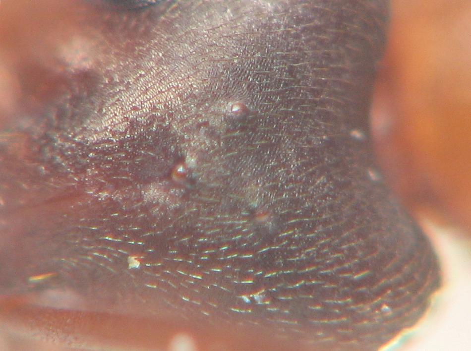 Et avec ce que j'ai comme critères, ce détail pourrait changer toute mon identification, puisque là j'ai une Coptoformica avec quelques poils (4 maximum dressés ou subérigés...) sur le clypéus et sur tous les tergites de l'abdomen (un ou deux sur le premier tergite, puis de plus en plus).