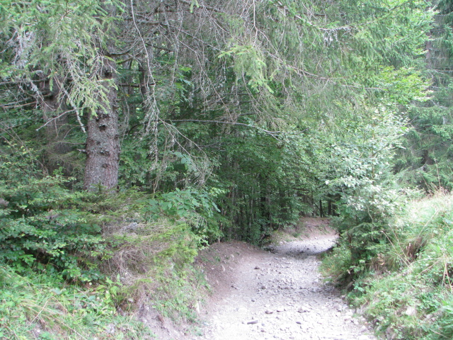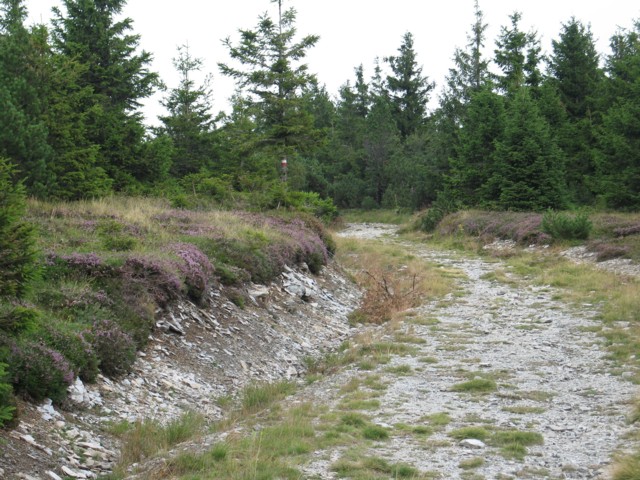 Sur des chemins de terre et roches, avec un sol calcaire, entre des forêt de résineux et des prés. Emplacement du premier nid à gauche de la photo.