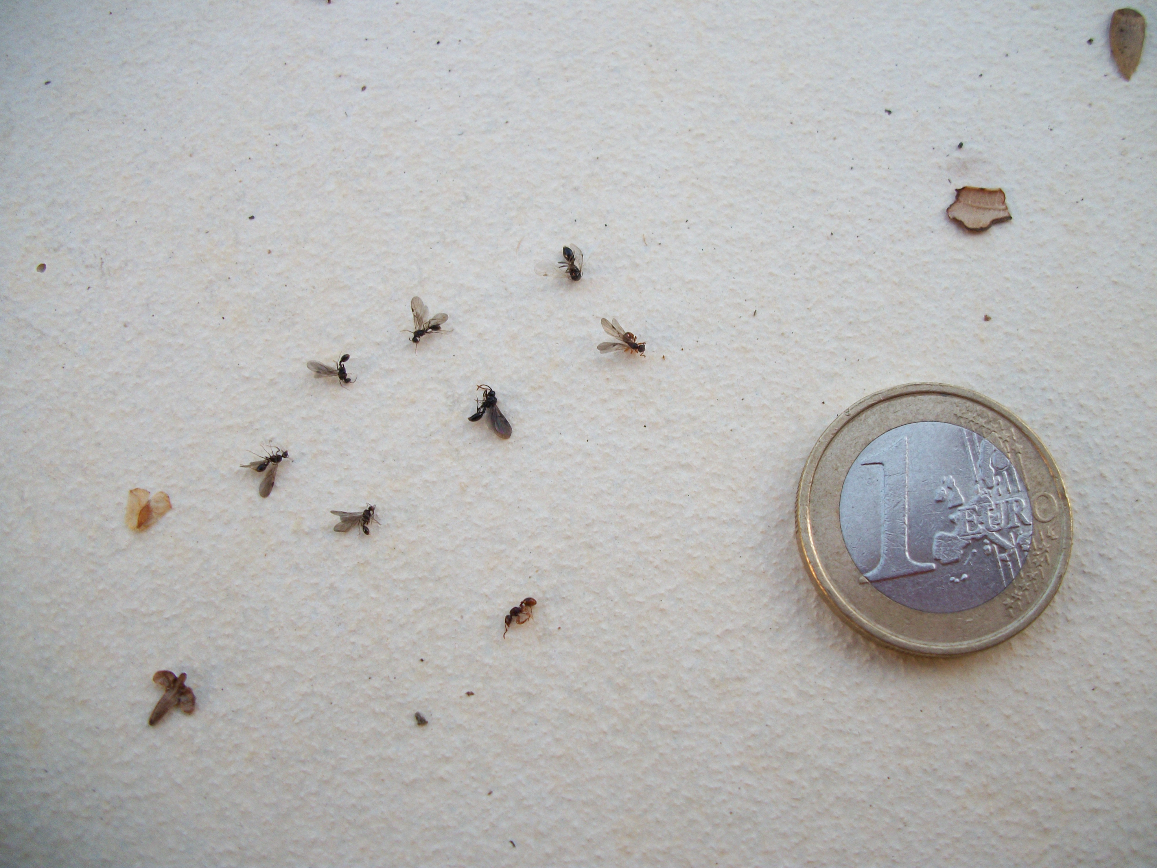 Des dizaines de petits ailés jonchent le sol. Il y a des Ponérinés, des Myrmecina, des Stenamma, des mâles Solenopsis et Aphaenogaster.....