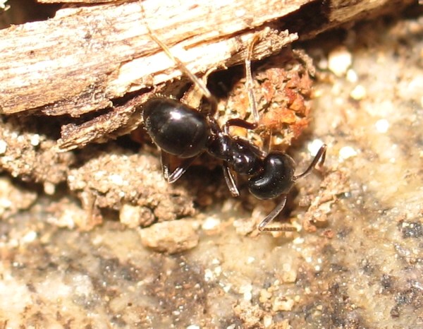 De plus sa couleur d’un noir brillant et sa taille variant de quelques 4 à 5 mm (gros Lasius), permettent de le reconnaître aisément « in situ ».