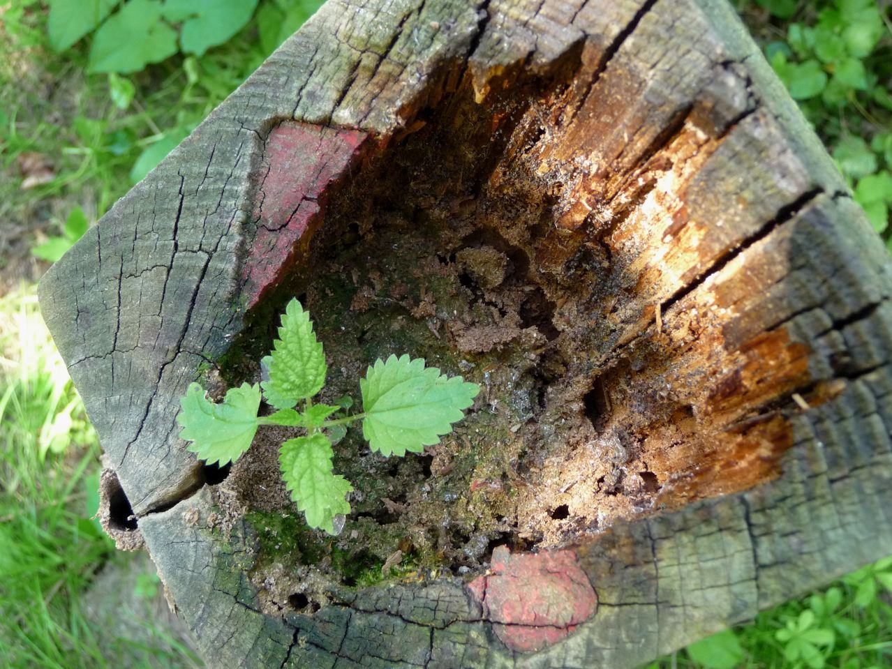 Avec toute la prudence habituelle pour les déterminations sur photos, 2 photos d'un poteau en bois résineux, subissant l'épreuve du temps. A la base, avec un tel aspect de sciure, pourrait-ce être L. fuliginosus ? Localisation: Île de la Folie (CEN Centre) à Chaumont/Loire 41.