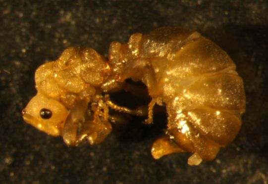 Au cours d'un weekend dans les Hautes-Alpes au mois d'aout j'ai eu la chance de rencontrer Anergates atratulus. C'est l'occasion de dire quelques mots sur cette espèce si particulière et dont la récolte est peu fréquente. C'est une espèce inquiline qui parasite Tetramorium impurum / caespitum. La caste ouvrière n'existe pas. La femelle, et surtout le mâle, ont une morphologie très dérivée. Les pièces buccales sont réduites. Le mâle, aptère, est quasiment dépigmenté et sa cuticule est très fine et molle. Les accouplements ont lieu dans le nid et les populations doivent avoir un taux d'inbreeding élevé. Cependant les colonies sont polygynes ce qui permet probablement un certain brassage génétique. Il existe plusieurs espèces parasites sociales qui pratiquent l'accouplement intranidal tout en étant monogyne; la consanguinité très forte devrait mener à la production de mâles diploïdes théoriquement stériles, ce qui pourrait être très préjudiciable à l'espèce. On peut se demander si des mécanismes n'ont pas été sélectionnés chez ces espèces pour palier à ces effets délétères. Le déterminisme du sexe est-il vraiment le même? Les mâles diploïdes sont-ils vraiment stériles chez ces espèces?