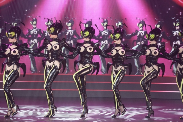 Le Comedia (Paris Xe), vendredi. Ces femmes-fourmis habillées en latex sont surnommées les Muglerettes.
