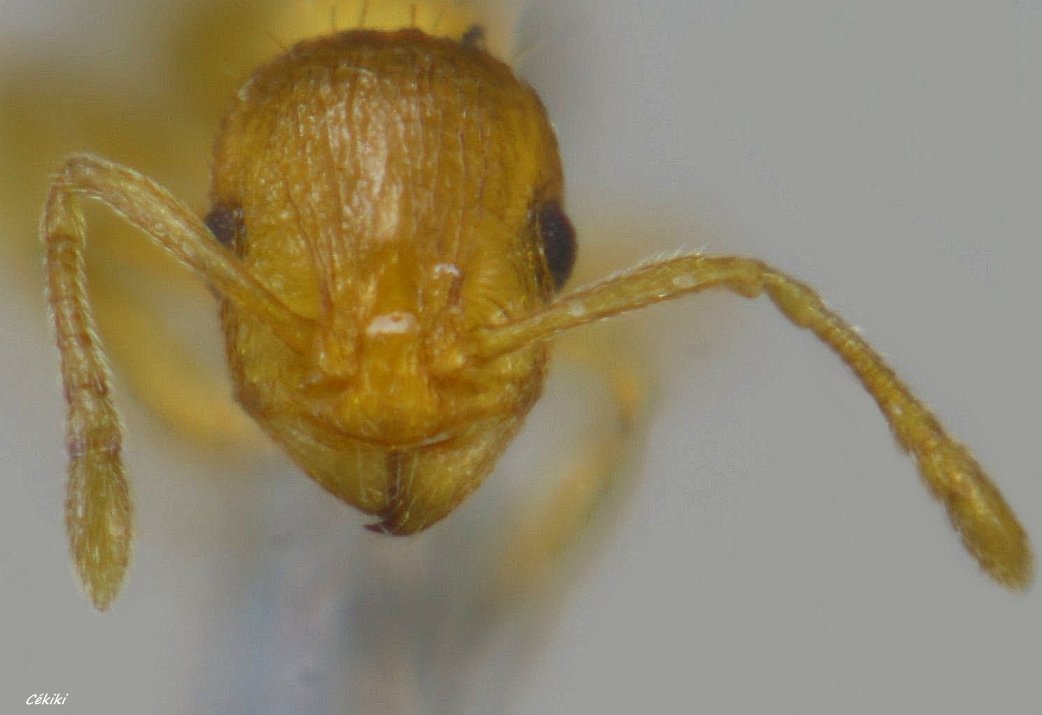 tête de l'ouvrière Temnothorax flavicornis ( 11 segments à l'antenne)